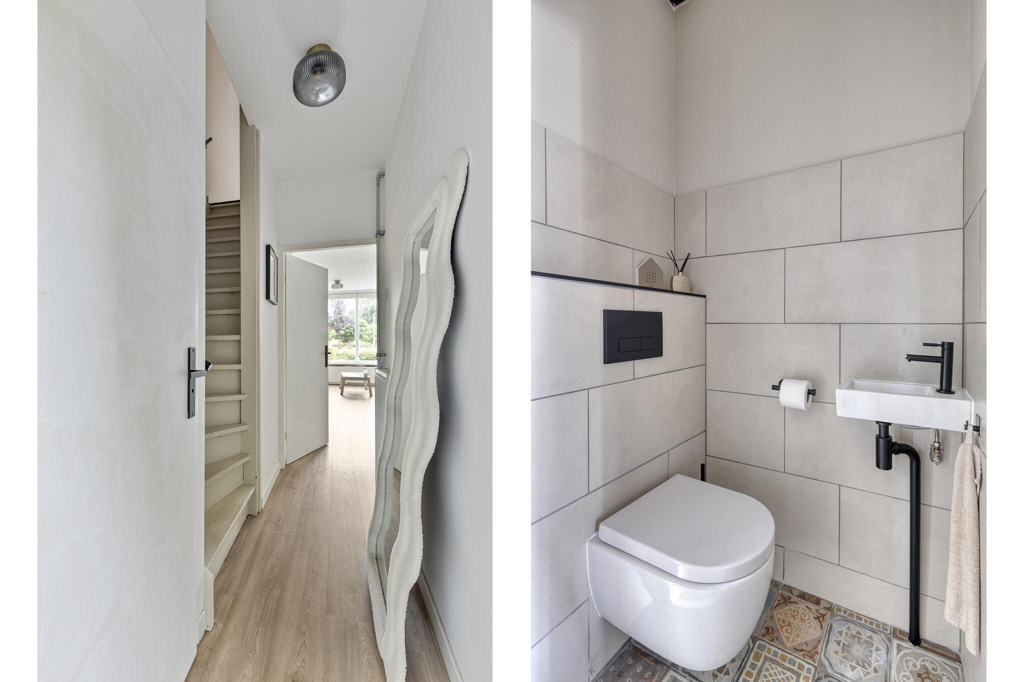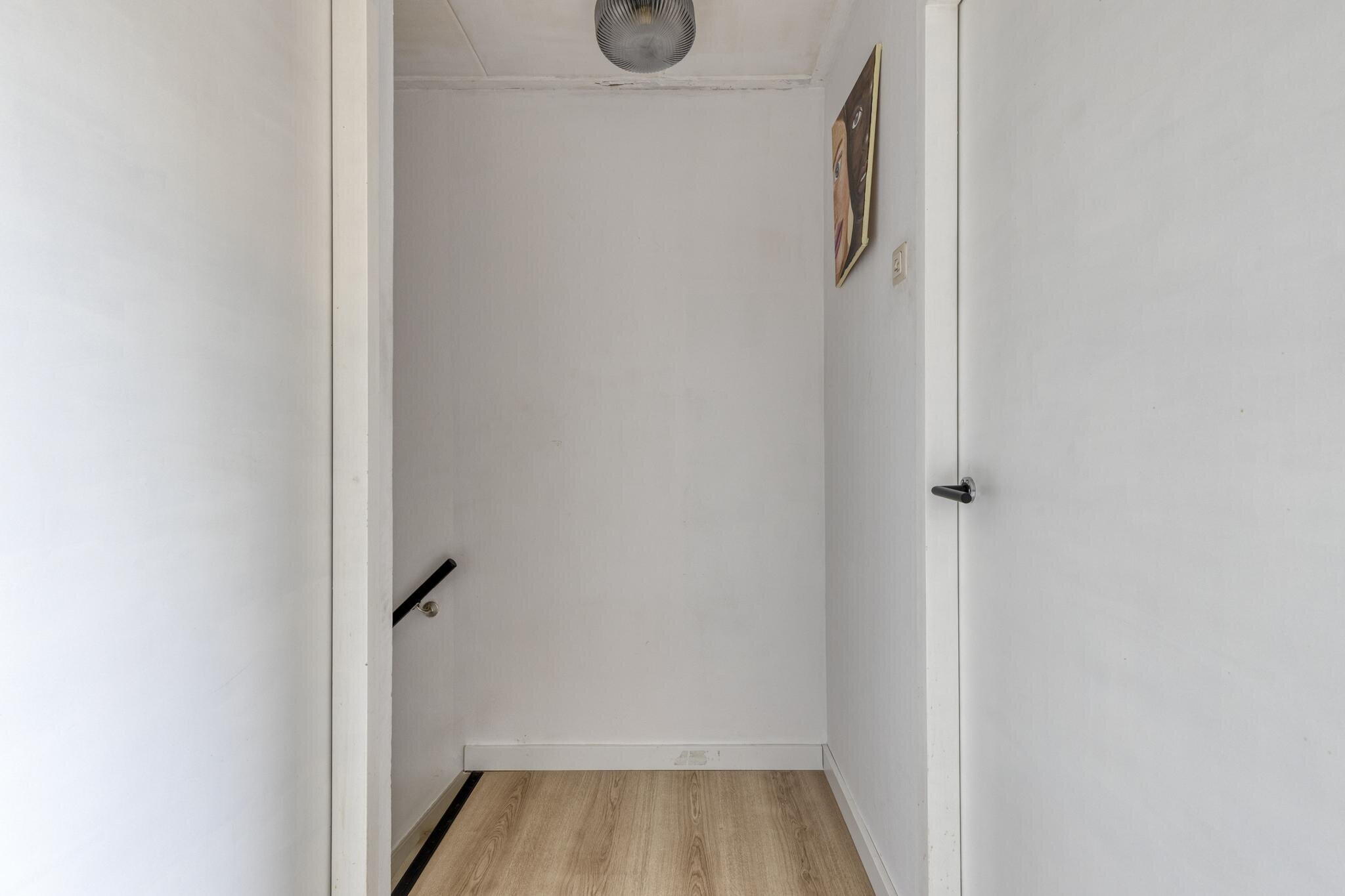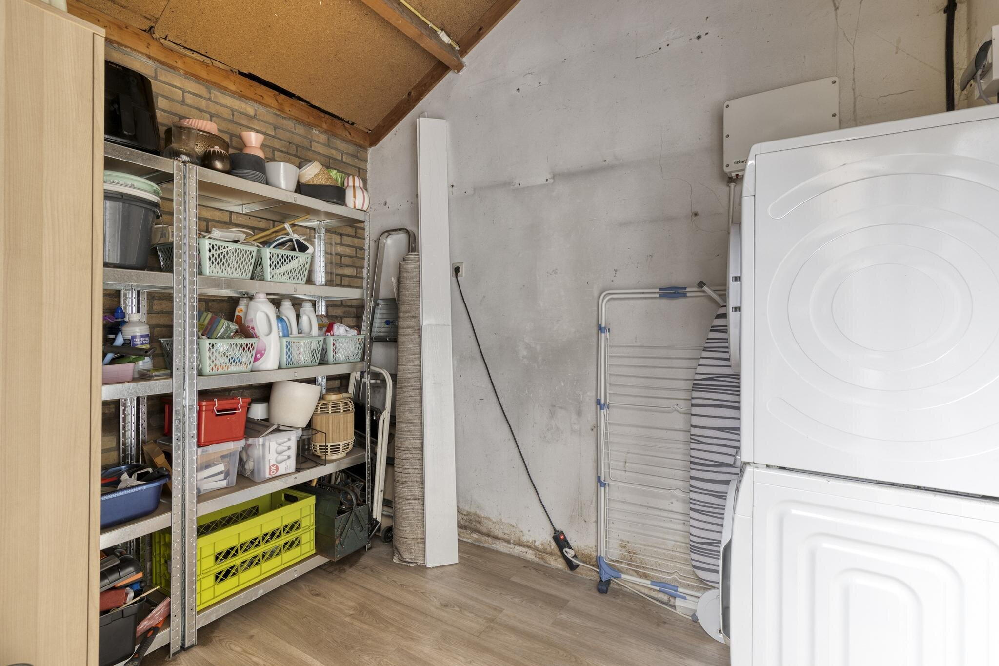 Via een achtergelegen hal kom je bij het toilet en de trap naar boven. Ook is er toegang tot de handige berging waar je de wasmachine kwijt kunt én een deur naar de tuin. Extra bergruimte nodig? De trapkast in de woonkamer is ideaal voor je voorraad of schoonmaakspullen.