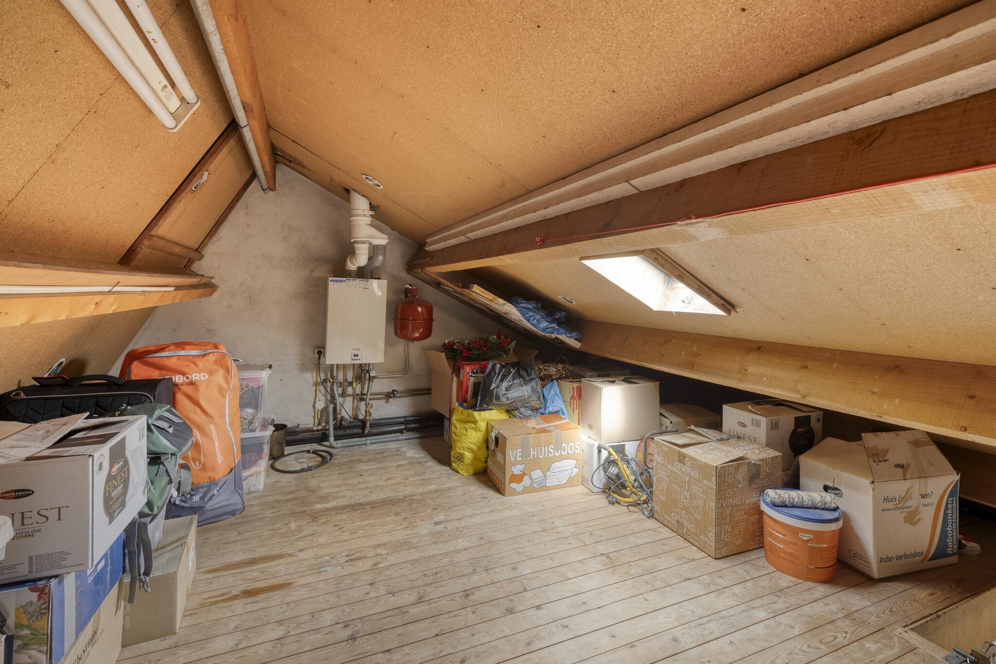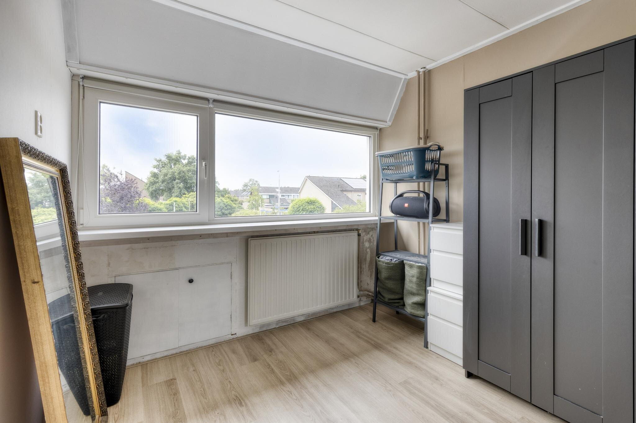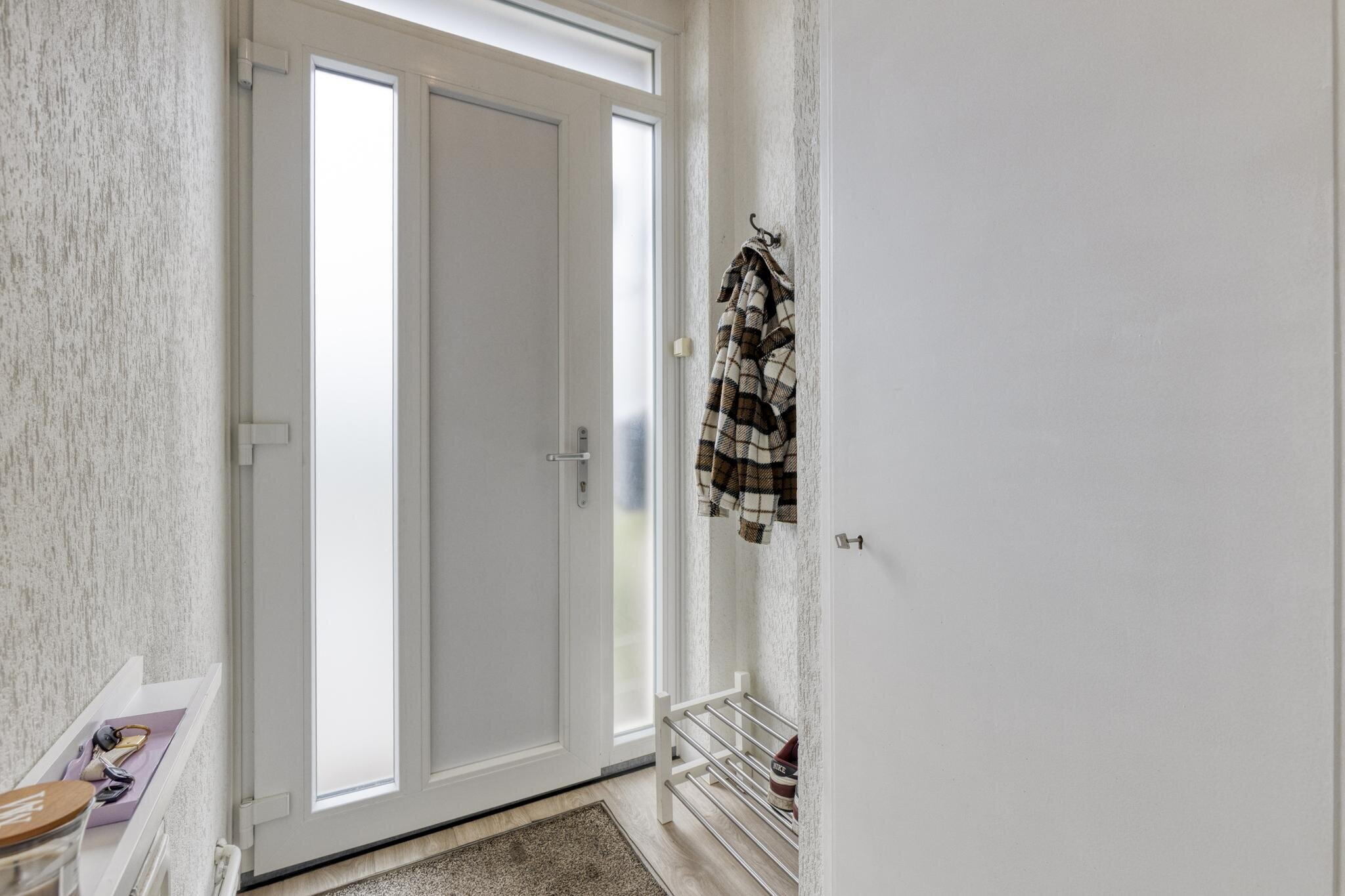 Via een achtergelegen hal kom je bij het toilet en de trap naar boven. Ook is er toegang tot de handige berging waar je de wasmachine kwijt kunt én een deur naar de tuin. Extra bergruimte nodig? De trapkast in de woonkamer is ideaal voor je voorraad of schoonmaakspullen.